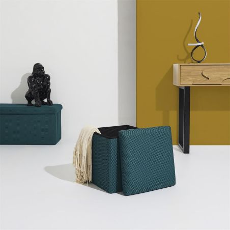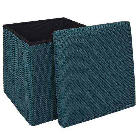 Pouf coffre carré pliable en tissu texturé maille 3D bleu - ELECTRON.
