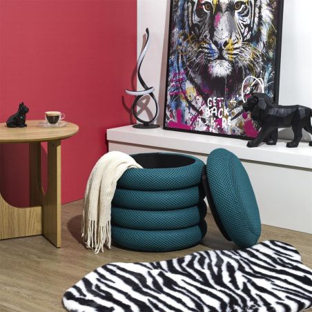 Pouf rangement rond en tissu texturé maille 3D bleu - ELECTRON.