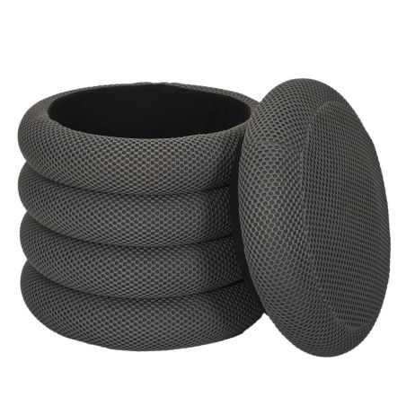 Pouf rangement rond en tissu texturé maille 3D gris - ELECTRON.