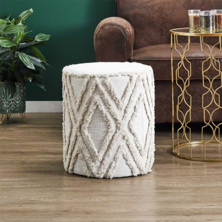 Pouf tissu relief ton sur ton style bohème beige de la gamme Ramia.
