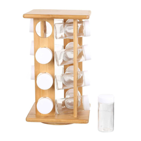 Présentoir tournant en bambou naturel. Pots en verre, avec système saupoudreur inclus.