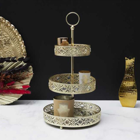 Plateau Décoratif à 3 Etages en Métal Doré.
