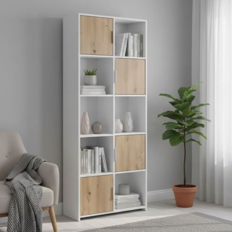 Meuble Multi-Rangement Blanc et Effet Bois de la gamme Ophely.