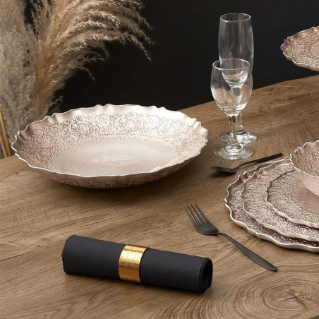 Pour terminer une mise en place irréprochable, craquez pour ces ronds de serviettes dorés ! Pour une table des plus chic voire royale !