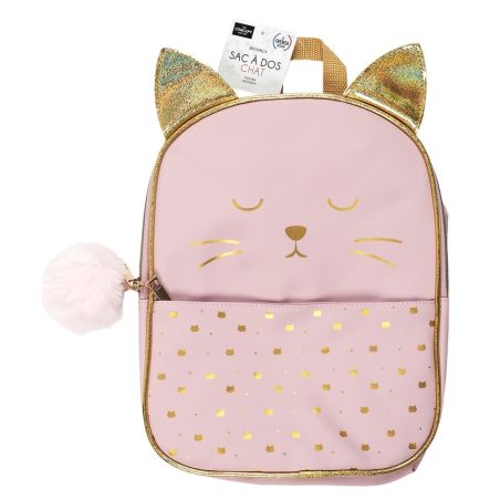 Sac à Dos Enfant Chat Rose et Doré.