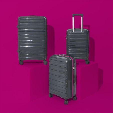 Lot de 3 Valises Grises Zip Rose Fluo avec Roues Pivotantes 360°, Cadenas Sécurisé à Code.