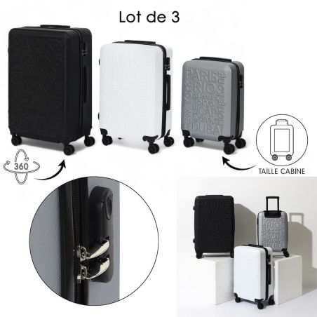Lot de 3 Valises Noire, Grises, Blanche avec Roues Pivotantes 360° et Cadenas Sécurisé à Code.