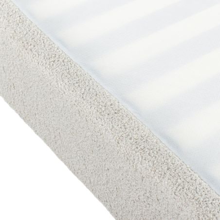 Finition : Housse en tissu bouclette coloris crème. Fixation par velcro.