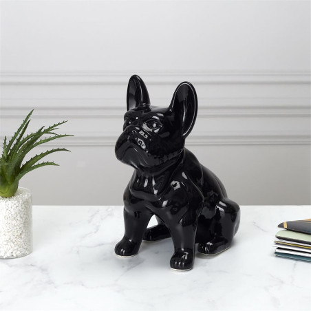 Bulldog en Céramique Noir Brillant H20cm.