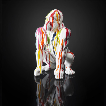 Statue Gorille en Résine Multicolore Brillant H46cm.