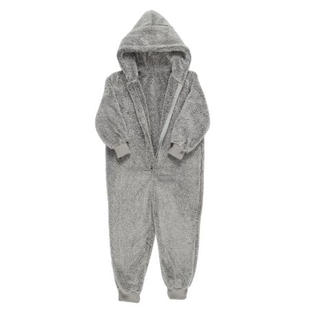 Combinaison en sherpa gris pour enfant, idéale pour des soirées pyjama confortables et chaleureuses.