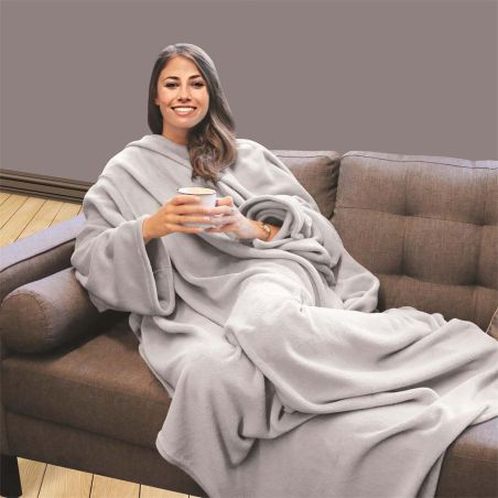 Plaid à Manches Ultra Doux 140x180cm Gris.