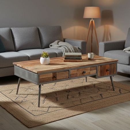 Une table basse disposant d'un large plateau, et également équipé de tiroirs de rangement pour ne pas encombrer inutilement votre table.