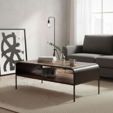Une gamme de meuble impactante grâce à l'alliance du métal et du bois de récupération. En plus de sa grande surface, cette table basse dispose d'une niche inférieure pour stocker magazines et autres télécommandes.