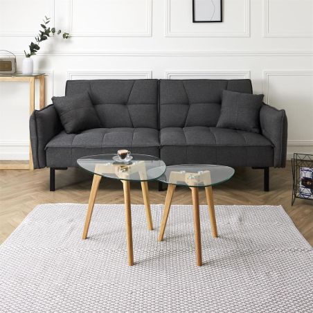 Lot de 2 Tables Basses Gigognes Verre Trempé Roch.