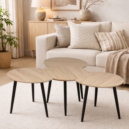 Modulables à votre guise ! Emboîtez-les en ligne, en étoile, c'est à vous de voir. Son plateau Aspect Bois clair et son piètement anthracite vous assure une touche tendance supplémentaires dans votre intérieur.