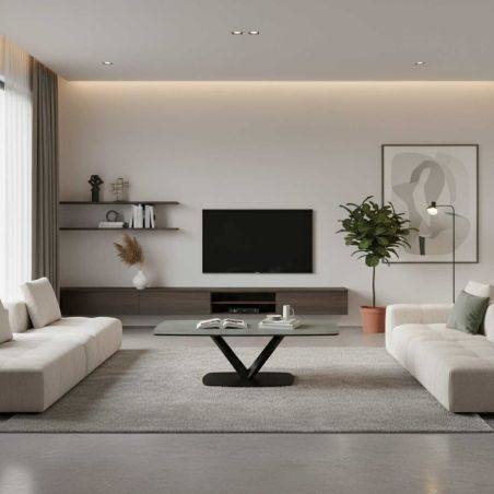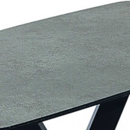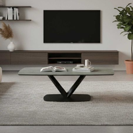 Table Basse Aspect Céramique Grise Pied Central V de la gamme Karu.