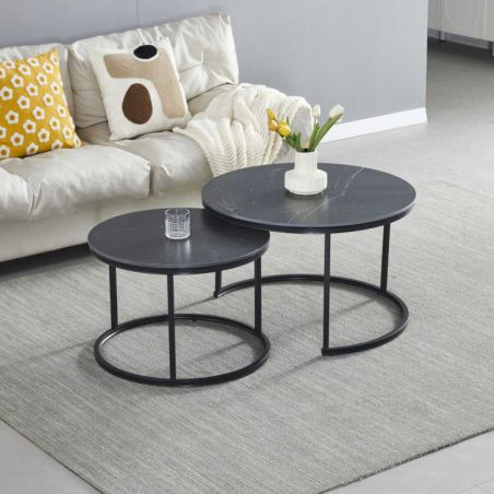 Duo de Tables Gigognes Marbre et Piètement Noir de la gamme Marva.