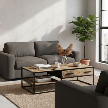 Table Basse 1 Tiroir en Teck Recyclé et Métal de la gamme Tanetoa.
