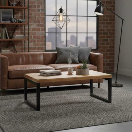 Table Basse en Acacia Massif et Piètement en Métal Noir de la gamme industrielle Bowna.