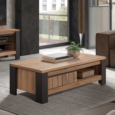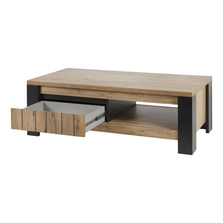 Table Basse 1 Tiroir et 1 Niche Métal et Aspect Bois Finition Scarlet de la gamme Clodius.