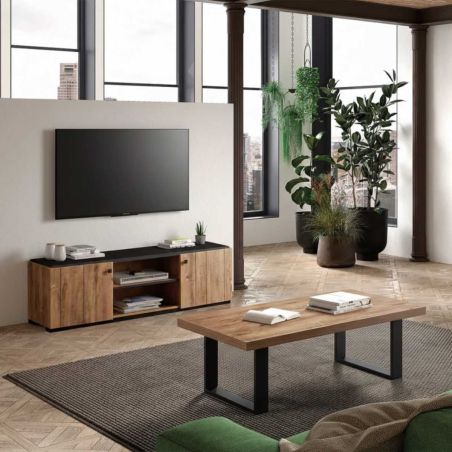 Table Basse Aspect Bois Piètement U Métal Noir de la gamme Denver.