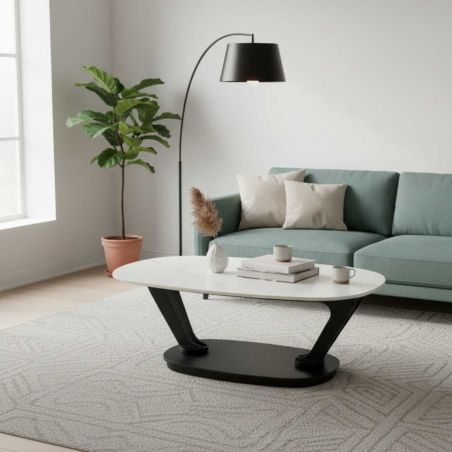 Table Basse Plateaux Céramique Effet Marbré Blanc Amovible de la gamme Ysaline.