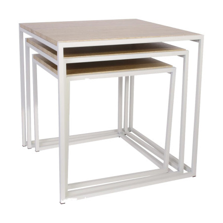 Lot de 3 Tables Gigognes Carrées Effet Bois et Métal Blanc.