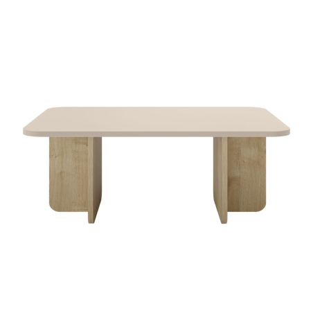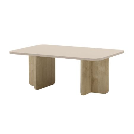 Table basse rectangulaire en mélaminé plateau beige et piètement imitation bois - HESTIA.