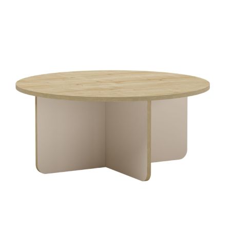 Table basse ronde Ø80cm en mélaminé plateau imitation bois et piètement beige - HESTIA.