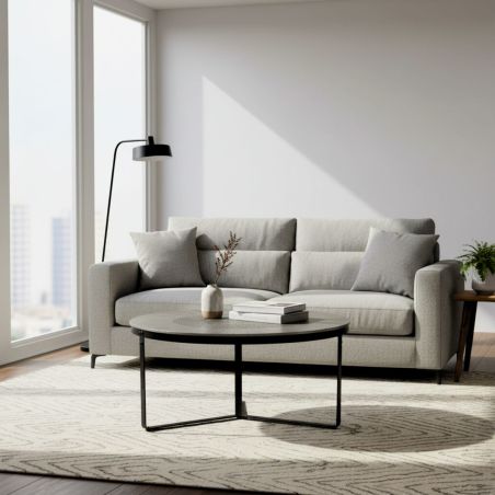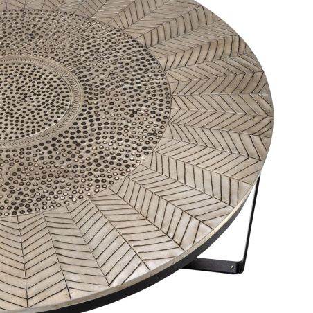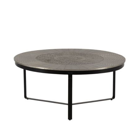 Table basse ronde Ø90cm en métal martelé et sculpté finition brossé pied laqué noir - SOHALIA.