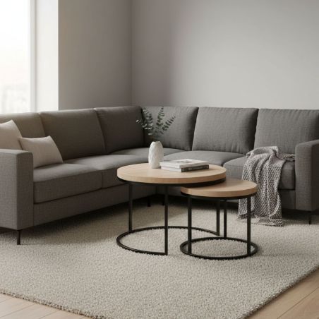 Table Basse Gigogne Aspect Bois finition Urban Oak Piètement Métal Noir - BRIDGE.