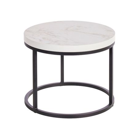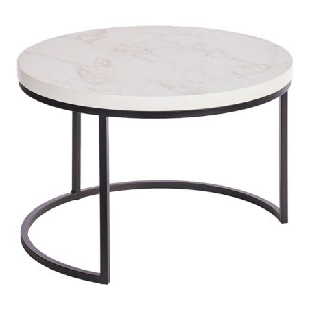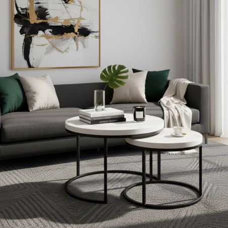 Table Basse Gigogne Aspect Bois finition marbre blanc Piètement Métal Noir - MARMOL.