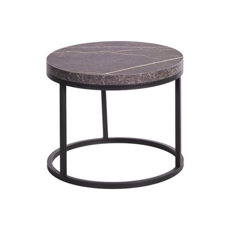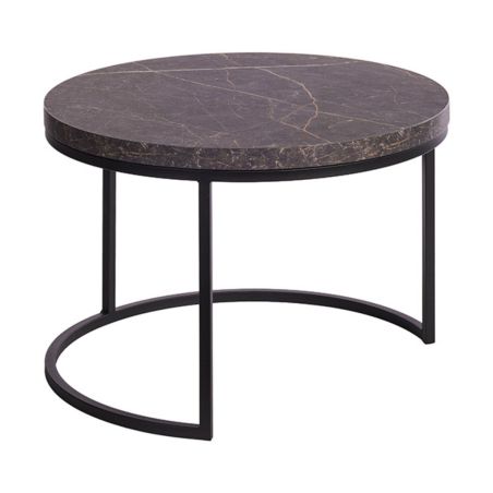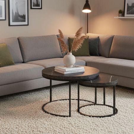 Table Basse Gigogne Aspect Bois finition marbre noir Piètement Métal Noir - MARMOL.