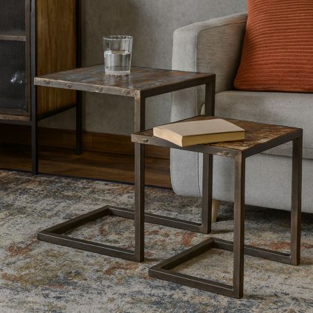 Tables basses gigognes carrées en métal et plateaux bois massif recyclé - EREL.