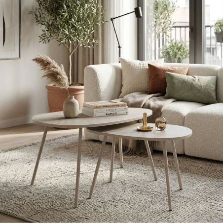 Tables gigogne plateaux aspect pierre naturelle 4 pieds métal laqué beige - SHANON.