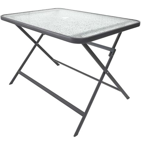 Table pliante en métal anthracite et plateau en verre trempé de la gamme Christina.