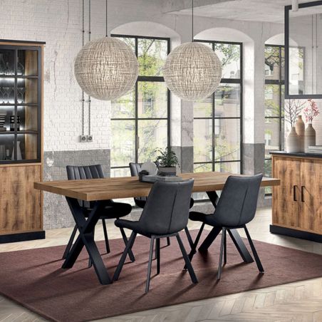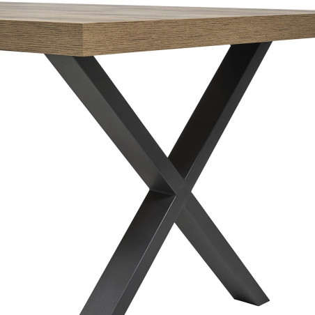 Table 170cm Aspect Bois Piètement Métal Poudré Noir en forme de X de la gamme Jenna.