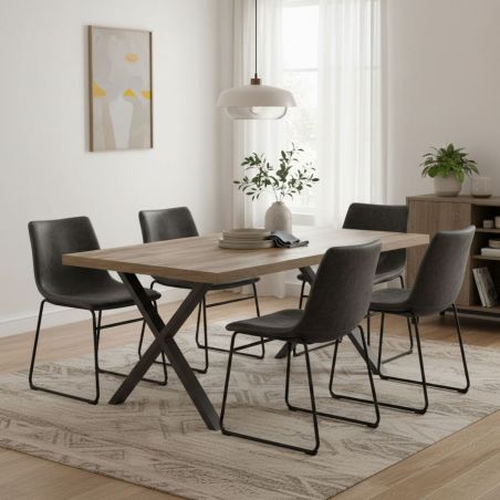 Table 200cm Aspect Bois Piètement Métal Poudré Noir en forme de X de la gamme Kora.
