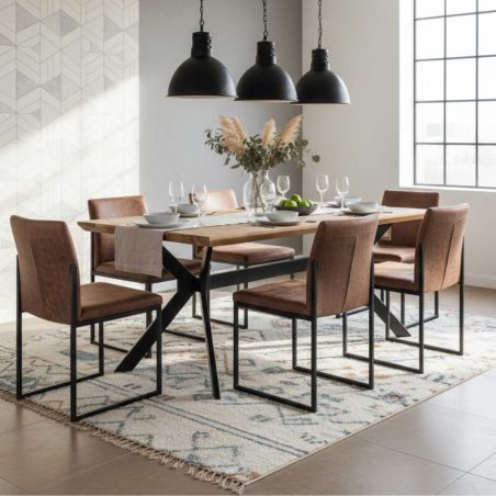 Une table à grande capacité, robuste, et tendance, qui apportera chaleur et caractère à votre intérieur. Son piètement original égaillera votre déco. Vous serez emballés à l'idée de réunir vos convives autour de cette table conviviale.