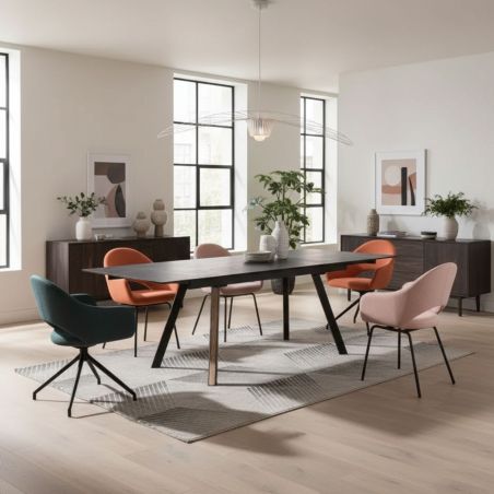 Table de Repas Allongable Plateau en Céramique Piètement évasé Métal et Bois de la gamme Craig.
