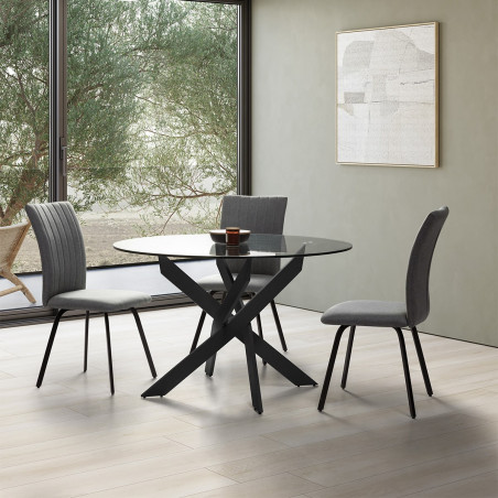Table Ronde 120cm Pieds Chromés et Plateau en Verre de la gamme Ritha.
