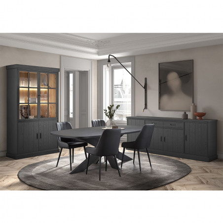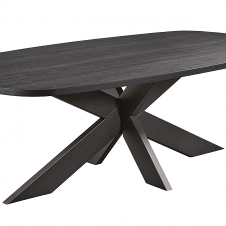 Table Repas Ovale 230cm Aspect Bois Noir Piètement Araignée Métal Noir de la gamme Alpha.