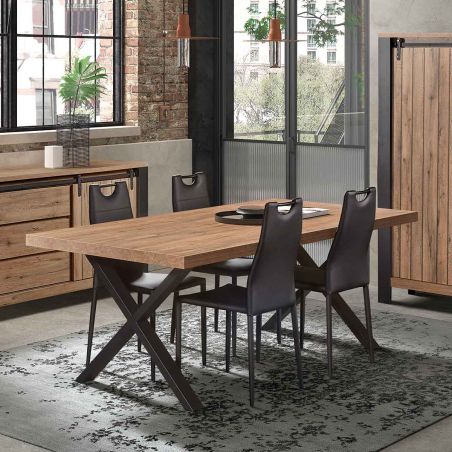 Table 170cm Aspect Bois Finition Scarlet Piètement X Métal Noir de la gamme Clodius.