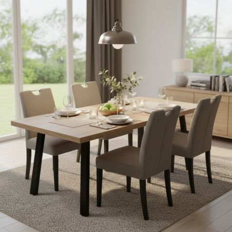 Une table repas aux lignes sobres et contemporaines pour tous les intérieurs. Son design tient en son piètement noir poudré en A.