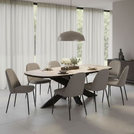 Table 200cm Aspect Bois Piètement Métal Araignée Noir de la gamme Canyon Ovale.
