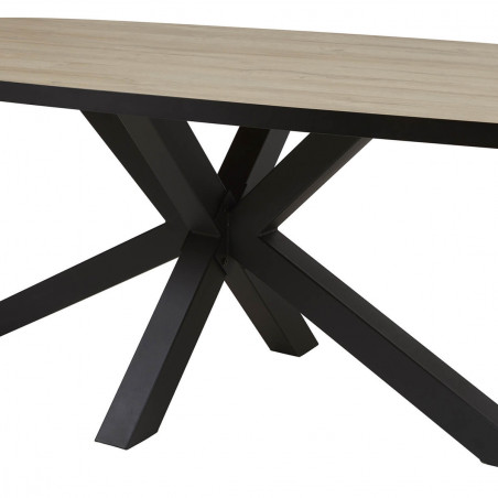 Table Ovale 200cm Aspect Bois French Oak Piètement Etoile Métal Noir de la gamme Frank.