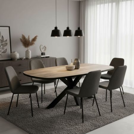 Table Ovale 200cm Aspect Bois Piètement Etoile Métal Noir de la gamme Tropix.