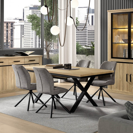 Table Allongeable 190/250 Aspect Bois French Oak Piètement U Métal Noir de la gamme Frank.