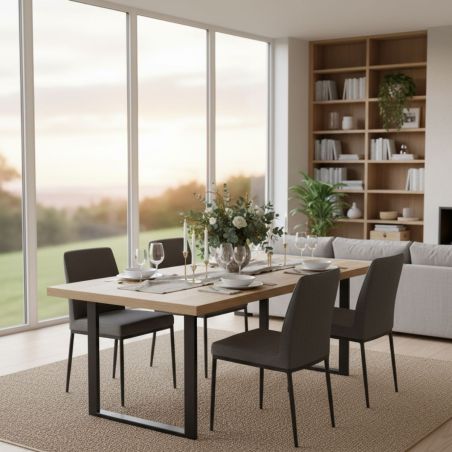 Table 230cm Aspect Bois French Oak Piètement U Métal Noir de la gamme Scarlet.